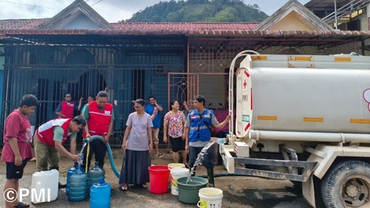 被災地域で給水サービス活動を展開するインドネシア赤十字社の救援チーム