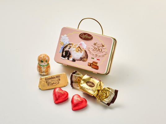 今年、カファレルは創業200周年を迎えます。この特別な年を記念し、アニバーサリーロゴをあしらった華やかなコレクションが登場。街角のティーサロンで、カファレルのスイーツを囲みながら語らう猫たち。そんな優雅で幸せなひとときをチョコレートに閉じ込めた、贈るのが楽しくなる、贈られて嬉しいねこの日のギフトシリーズです。昨年のジャンドゥーヤ生誕160周年に続き、この特別なタイミングしか手に入らない限定缶をぜひお楽しみください。