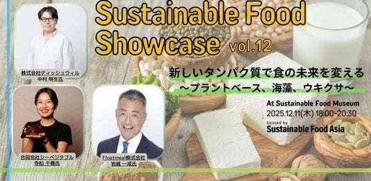 なお、POP UP期間中の関連企画として、SFA主催のトークイベント&試食懇親会「Sustainable Food Showcase vol.12【新しいタンパク質で食の未来を変える~プラントベース、海藻、ウキクサ~】」が2025年12月11日(木)に開催されます。当日は、株式会社ディッシュウィル、合同会社シーベジタブルとともに、Floatmealも登壇企業として参加し、“新しいタンパク質”をテーマに各社の取り組みや展望を紹介します。Floatmealからは事業開発部/法人営業担当の岩城一成が登壇予定です。