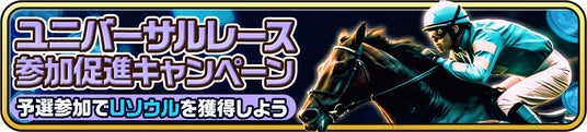 期間中、「ユニバーサルレース」に参加すると、通常の賞金に加え、 10着以下になった場合でも“参加賞”として20Uソウルを獲得できるキャンペーンを実施します。