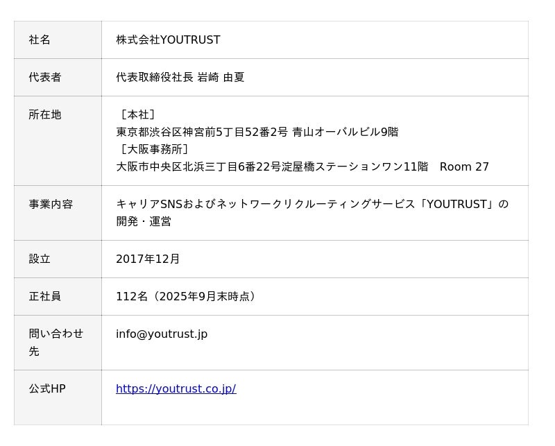 ▶ 採用支援「YOUTRUST TALENT」:https://lp.youtrust.jp/recruiter