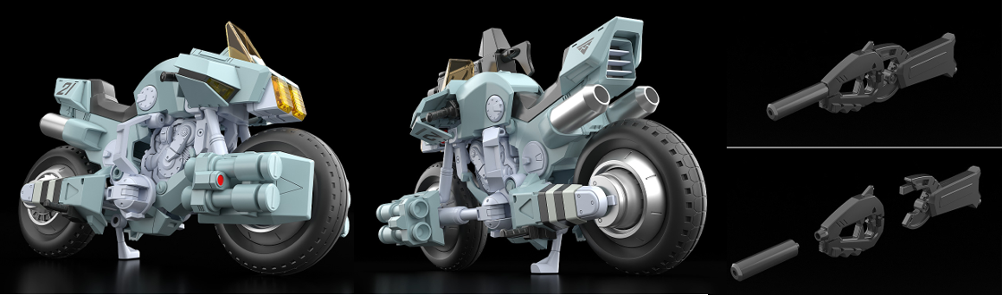 ・アーマーサイクルは、パーツの差し替えによってフロントカウル上にビームキャノンとターゲティングセンサーを装着することができます。