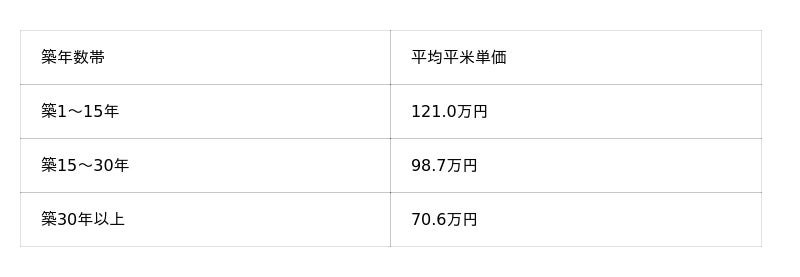 マンションナビは世田谷区の築年数帯ごとの平均平米単価を公開しています。