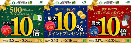 〇JR東日本の共通ポイントサービス「JRE POINT」は、おかげさまで2026年2月に10周年を迎えます。これまでのご愛顧に感謝し、今年9月より10周年記念キャンペーンを実施してきました。いよいよJRE POINT誕生月である2026年2月に『JRE POINT誕生祭』を開催します。