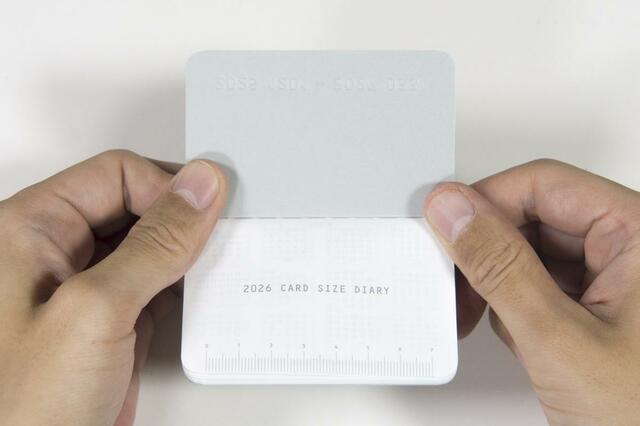 中表紙には「2026 CARD SIZE DIARY」の文字と定規が。