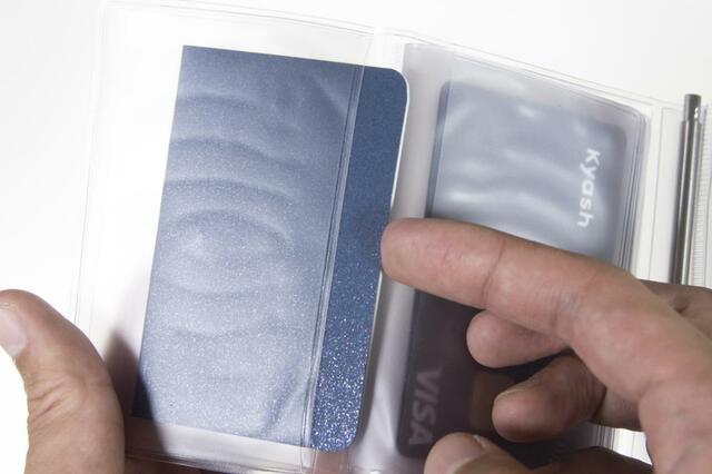 お財布のカード入れのような、クレジットカードが2枚入るポケットがあればもちろん収納可能。