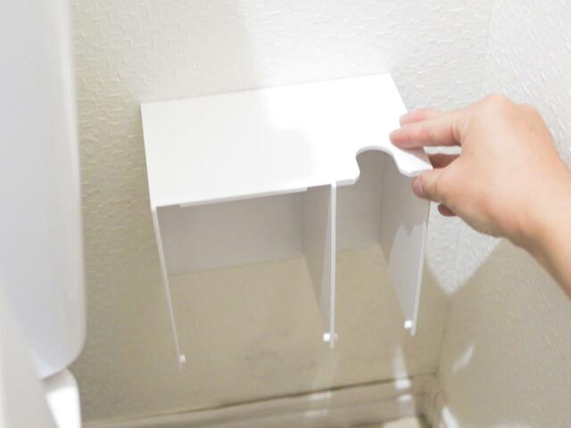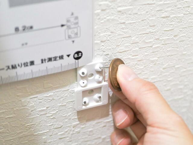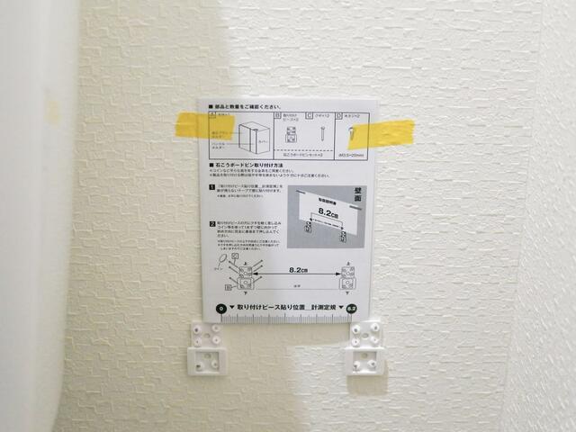 こちらのアイテムは、石こうボードピンで浮かせて設置する仕組み。