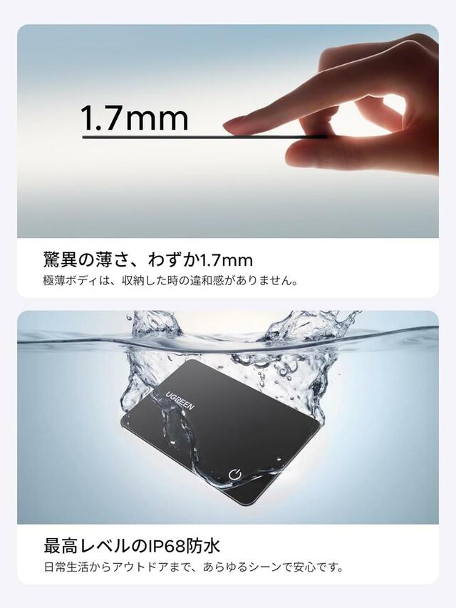 そのための対策として、11月23日に発売したUGREEN(ユーグリーン)のカード型スマートトラッカー「FineTrack Slim Duo」を忍ばせましょう。