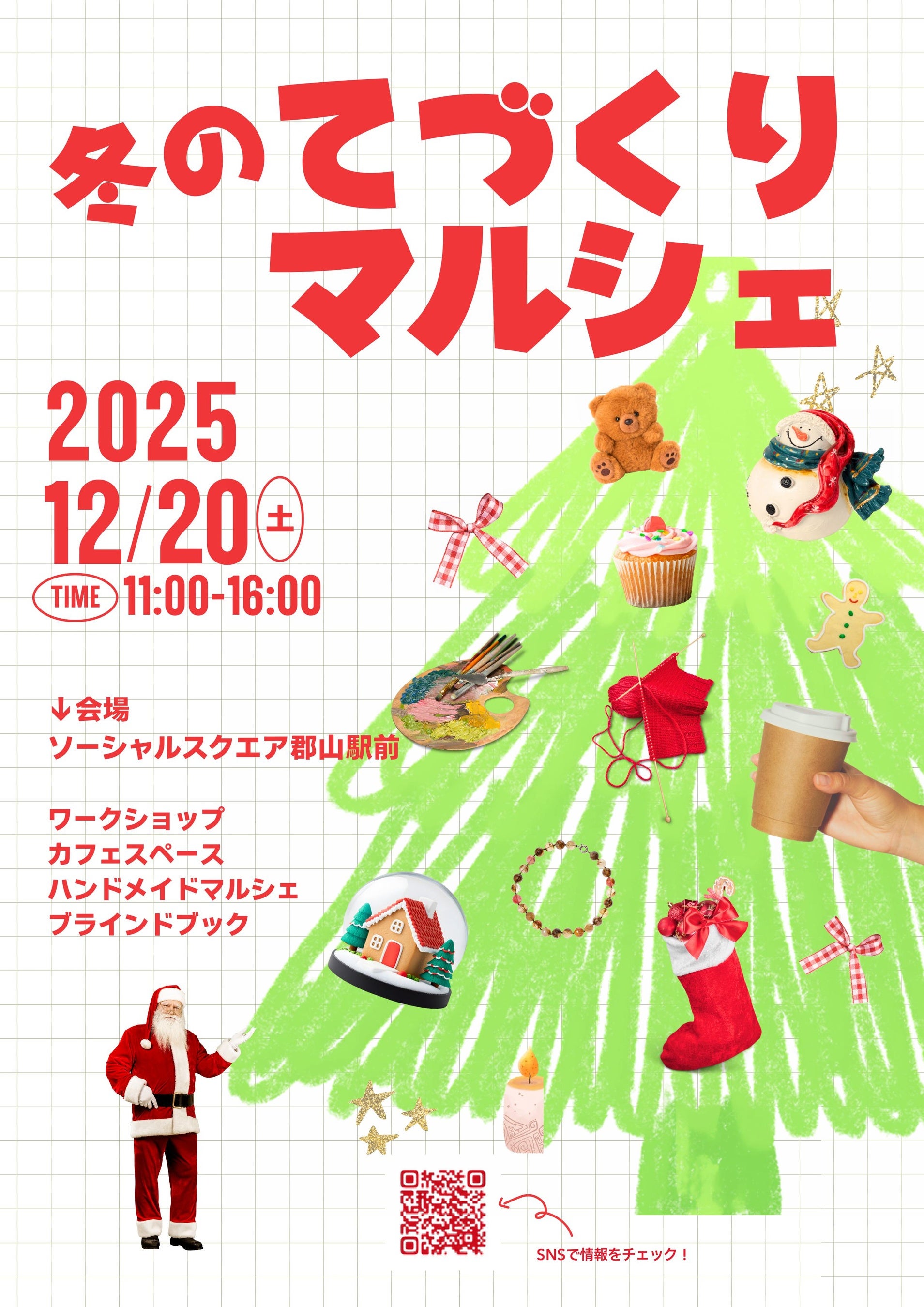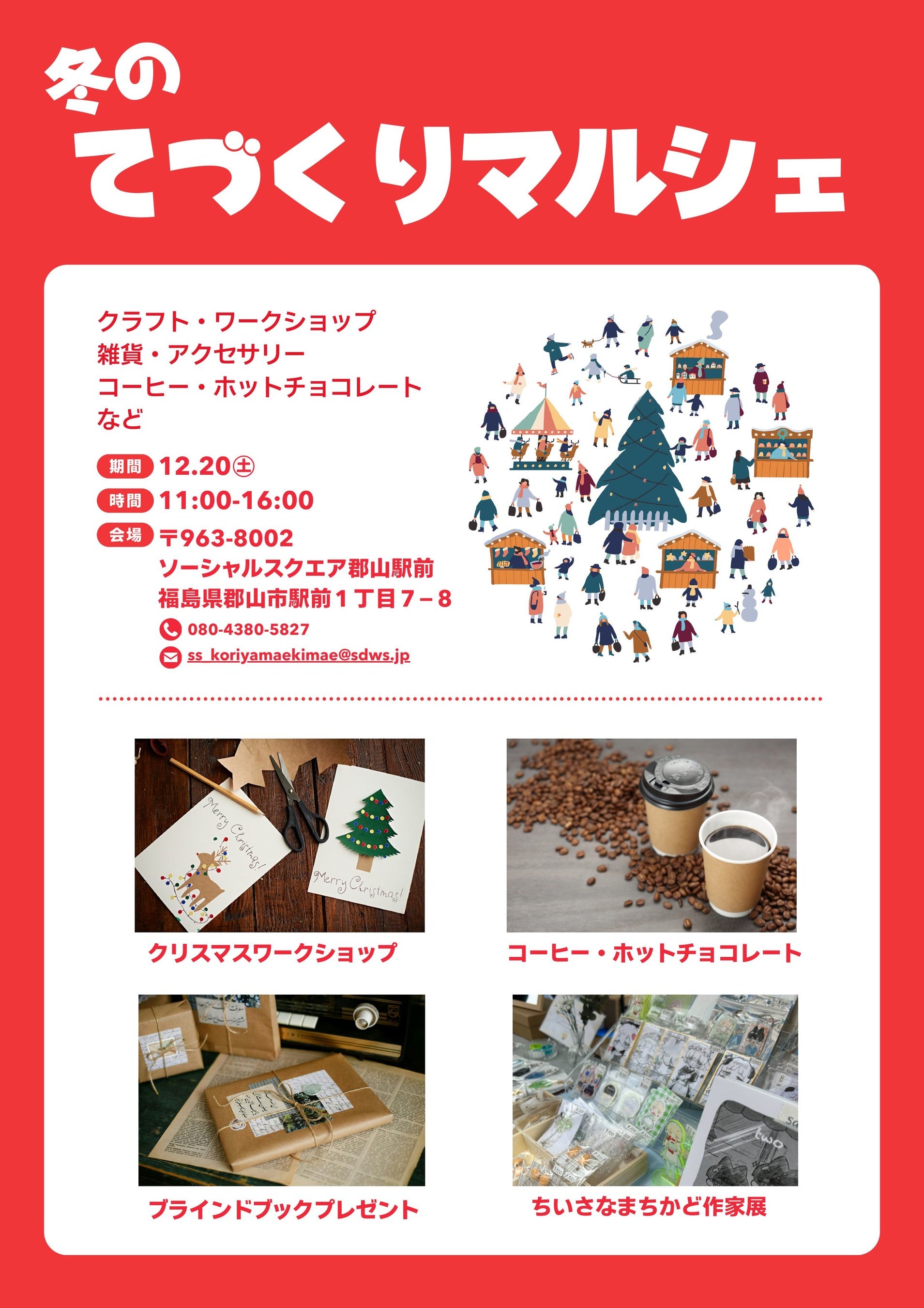 ソーシャルスクエア郡山駅前店(運営:NPO法人ソーシャルデザインワークス 代表理事:北山剛)にて、2025年12月20日(土)に、冬のてづくりマルシェを開催します。
