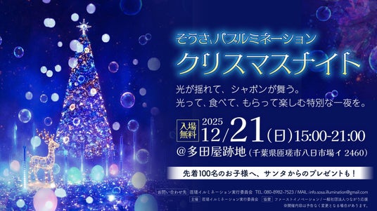 ファーストイノベーション(本社:東京都中央区晴海3-13-1 52F、代表取締役社長:木ノ根雄志)ならびに官民連携の地方創生団体『一般社団法人つながり応援』(理事長:清水国明、副理事長:木ノ根雄志・梶川隆史)は、千葉県匝瑳市で12月21日に開催される地域イルミネーションイベント「そうさ イルミネーション クリスマスナイト」への協賛を決定しました。