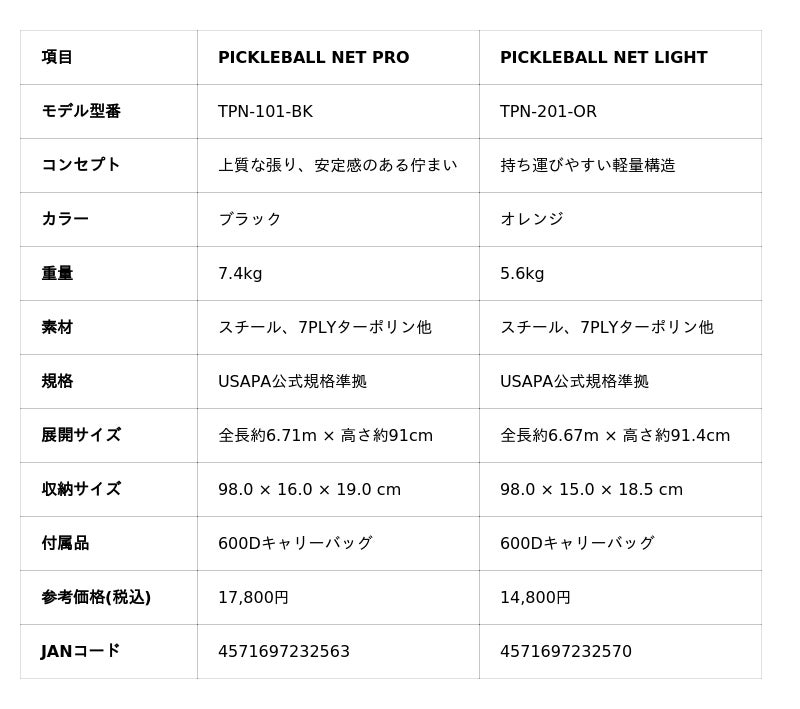 ■ PICKLEBALL NET LIGHT (TPN-201-OR) | 電車でも運べる、気軽なフットワーク