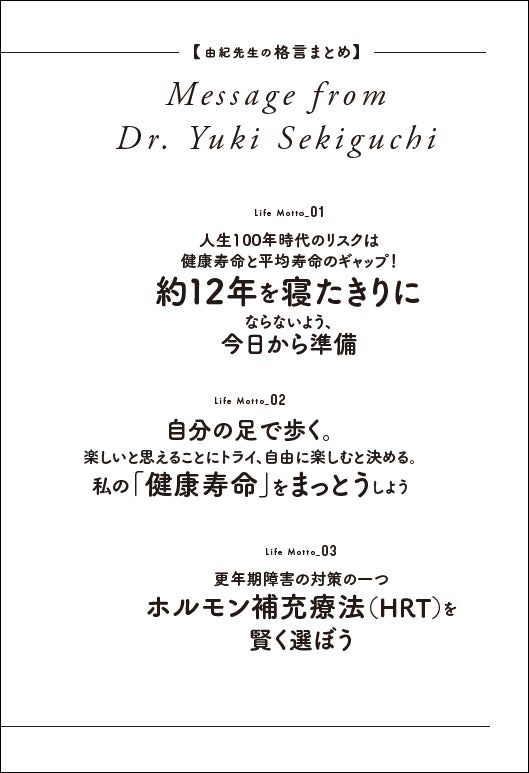 更年期うつ、フェムゾーントラブル、生活習慣病、骨粗しょう症…。知っておくべき予防&ケア法を自身も99歳まで現役をめざす、女性医療の第一人者が伝えます。