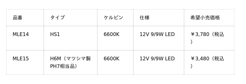 PIAA株式会社(本社:東京都文京区、代表:寺田 浩康)は、自社が展開する高性能、高品質な商品を提供し続けている「PIAA」ブランドから、2輪車専用ヘッドライト用LEDバルブ6600K HS1、H6Mの2タイプを、2025年12月に発売いたします。