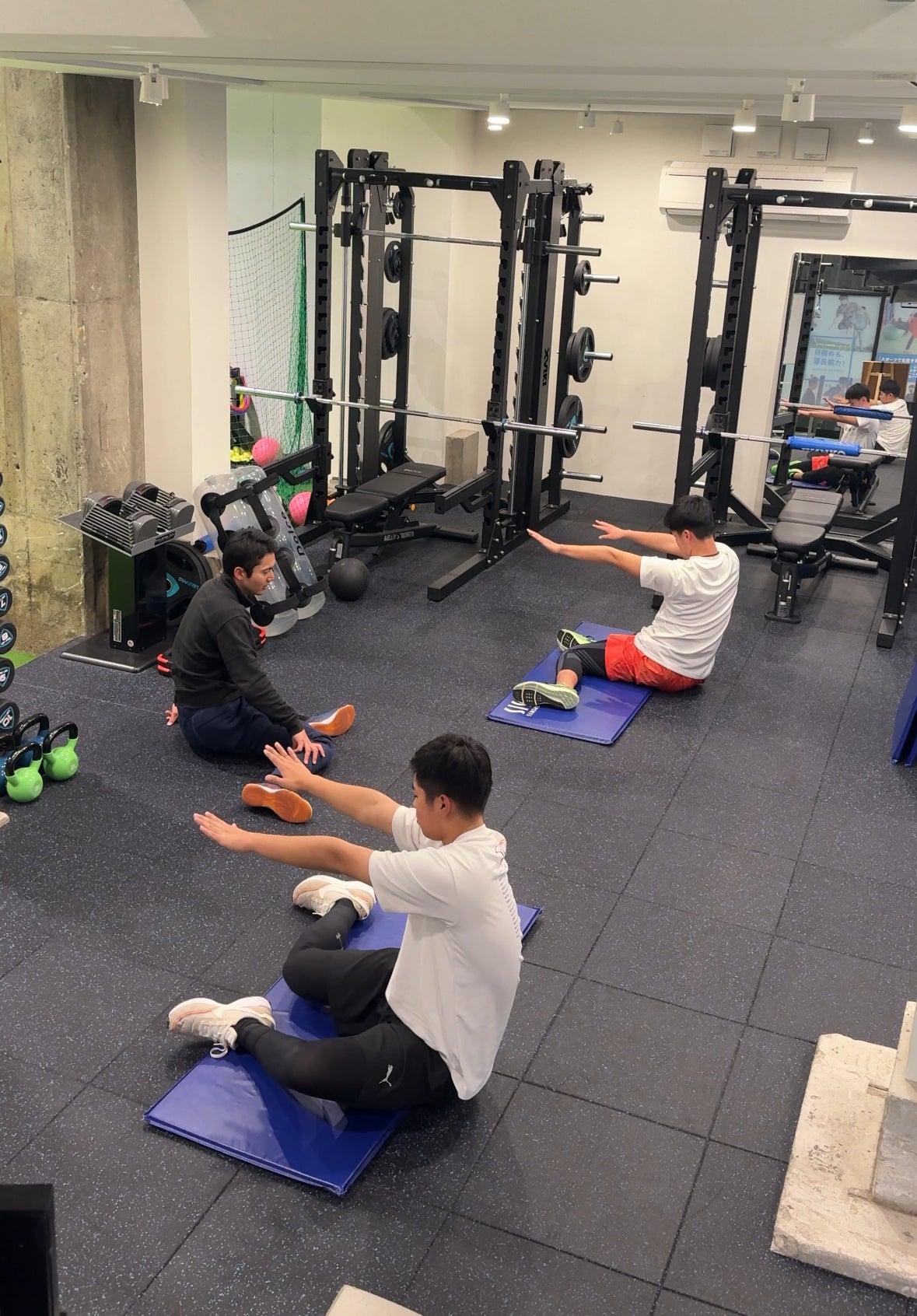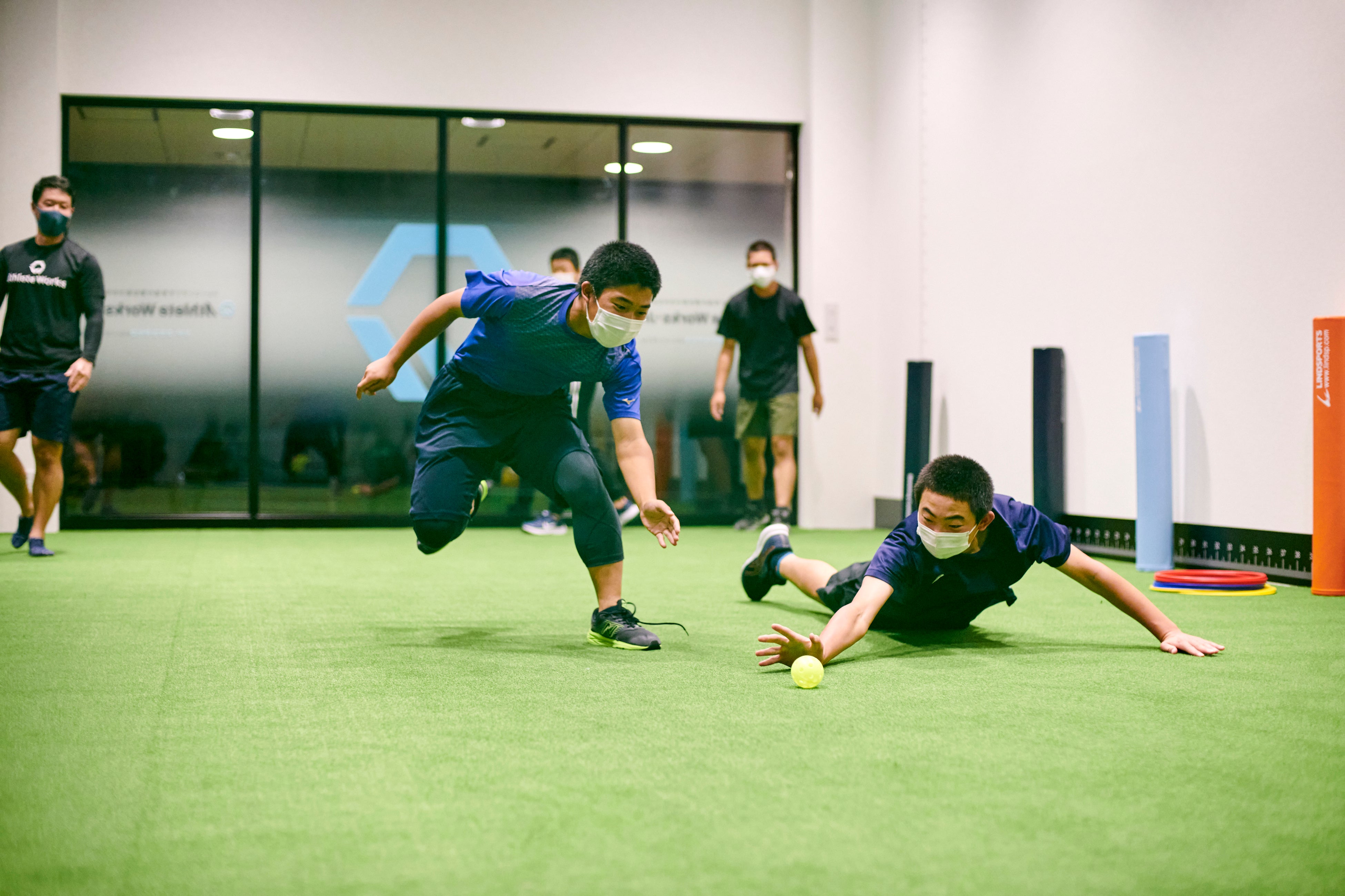 アスリートワークスでは、子ども一人ひとりの体の特性に合わせた身体操作トレーニングを中心に、心の成長を支えるメンタルプログラムも提供しています。今回の移転により、2フロアの広いトレーニング環境を整え、より質の高い指導を提供できるようになりました。