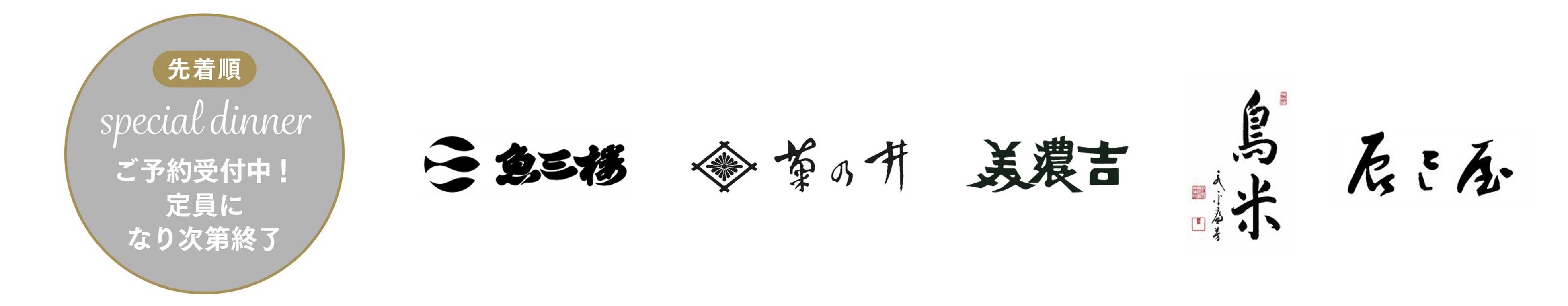 【参加料亭】 魚三楼、菊乃井、京懐石 美濃吉、京料理 鳥米、辰巳屋(順不同)