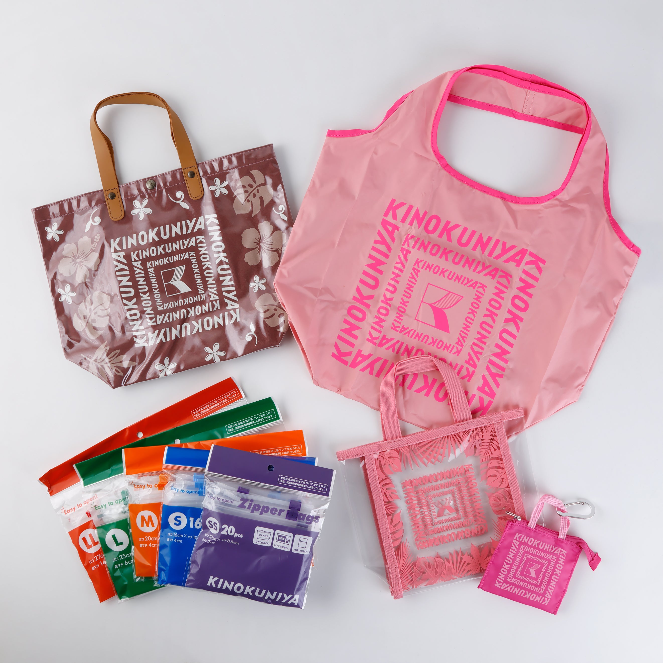 デイリーに使えるバッグをまとめて - ニューイヤーハッピーバッグ(ピンク)ピンク系で統一したエコバッグや保冷バッグ、スライドジッパーバッグを詰め合わせたセット。モンステラ柄のクリアトートやコンパクトバッグなど、デイリーに使いやすいアイテムを揃えました。