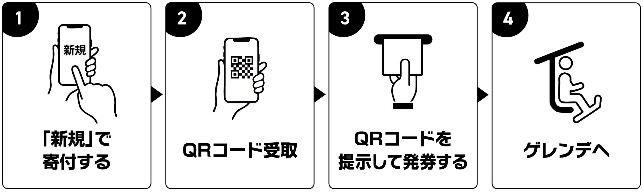 → スキー場発券機でQRコードをかざして発券後、リフトゲートへ