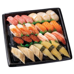 国産本鮪中とろ・特大ほたて・特大赤えび・ピュアレッドサーモン・いくら・本ずわいかに・ふわとろあなご・かずのこ