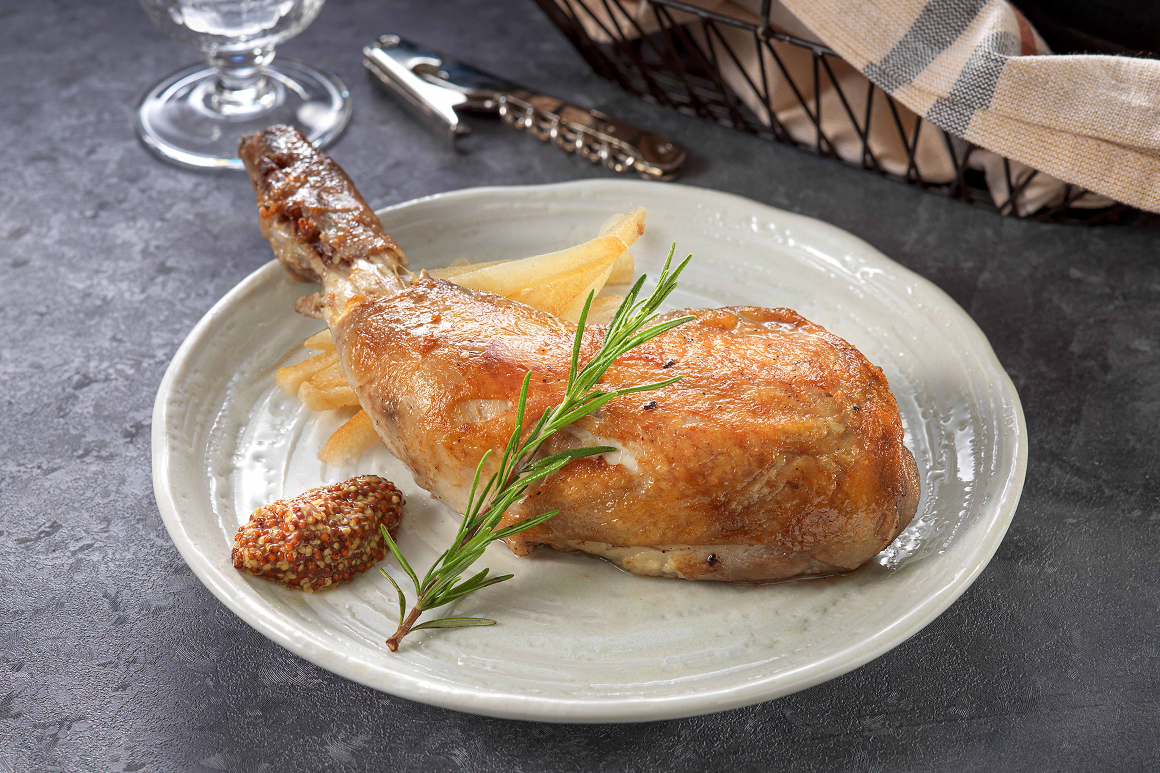 大山どり骨付き鶏もも肉のコンフィハーブと塩で丁寧にマリネし、鶏の旨味を閉じ込めながら低温のオイルでゆっくり加熱。ホロっと骨から身が外れるほど柔らかい極上コンフィは必食です!!
