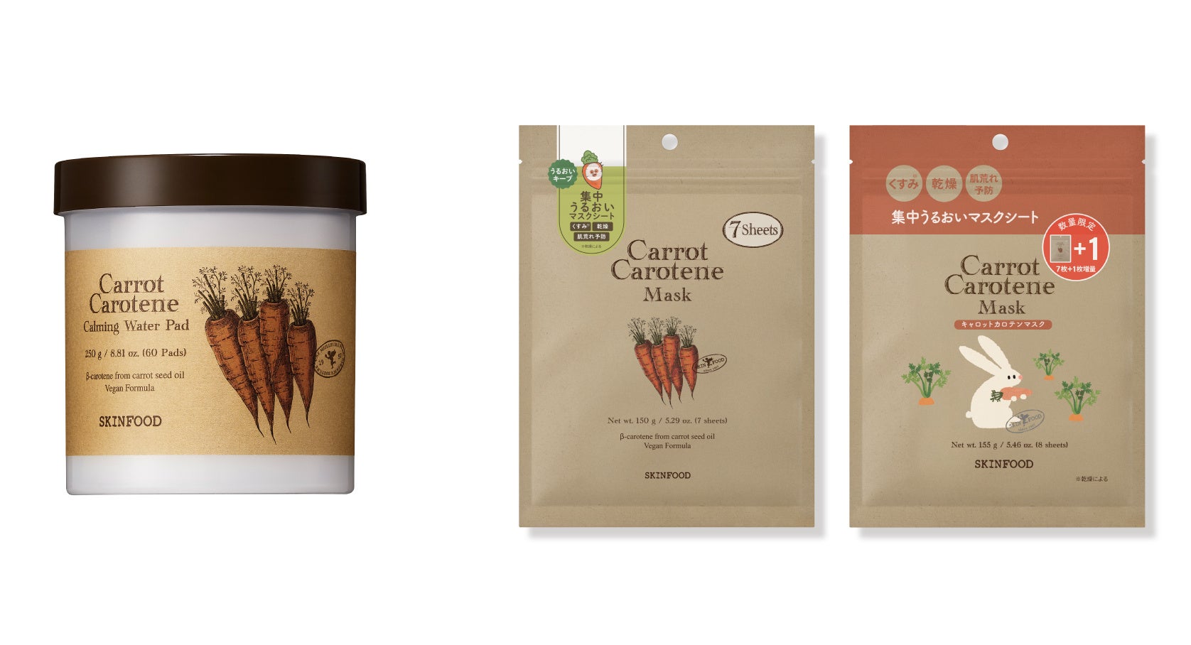 スキンフードの人気商品で累計販売個数1,100万個超えのパッド(※2)「キャロットカロテンウォーターカーミングパッド」と同シリーズで、太陽と大地の恵みをたっぷり受けたキャロット(※3)を閉じ込めた、毎日使える集中保湿マスクシートです。