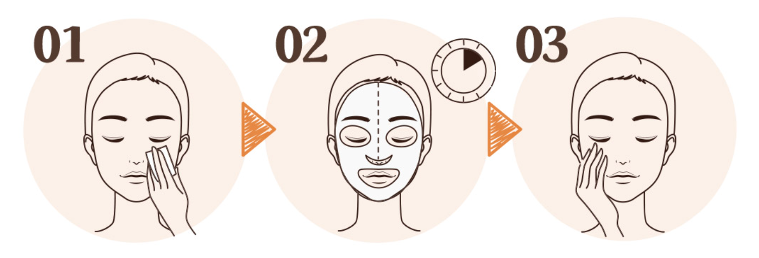 20~30分置いてからシートをはがし、残った美容液は手のひらでパッティングするようにしてなじませてください。