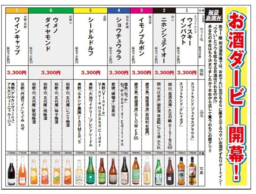 競馬新聞風の『お酒ダービー』のページも必見。クスっと笑える“ウマい”お酒がゲートインするほか、1月3日(土)の初売りでは、地下1階 和洋酒売場も競馬場風の装飾を施す予定です。