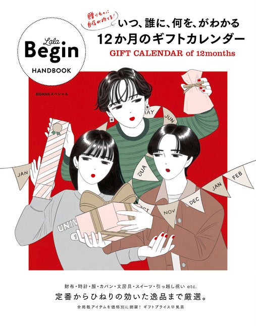 株式会社世界文化社は、人気ムック・シリーズ「LaLa Begin HANDBOOK」の最新刊『いつ、誰に、何を、がわかる12か月のギフトカレンダー GIFT CALENDAR 12 months』を11月29日 (土) に発売しました。