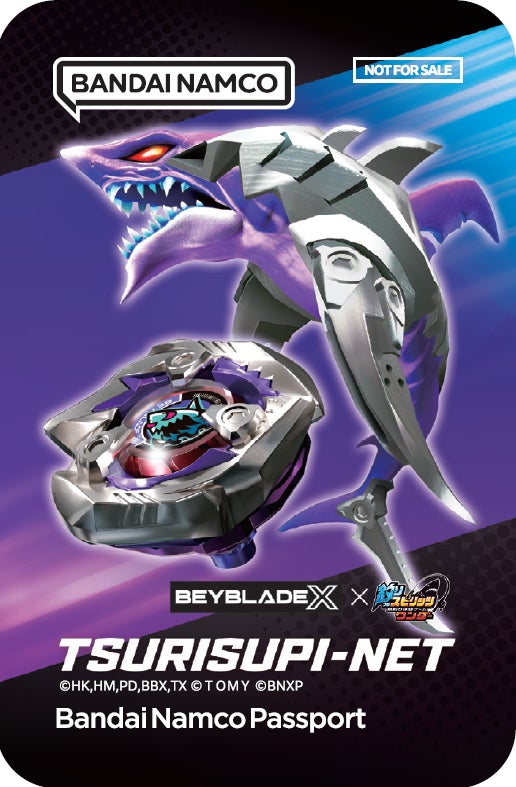 『釣りスピQRカード BEYBLADE Xコラボver.』は、『釣りスピリッツ ワンダー』のゲーム機にかざすとすぐに連動サイト『釣りスピ-NET』にログインすることができるカードです。『釣りスピ-NET』にログインして遊ぶことで、釣りあげた『シャークエッジ』のサイズや匹数、生態情報などの図鑑情報が閲覧できるほか、特別なコラボ称号が獲得できます。