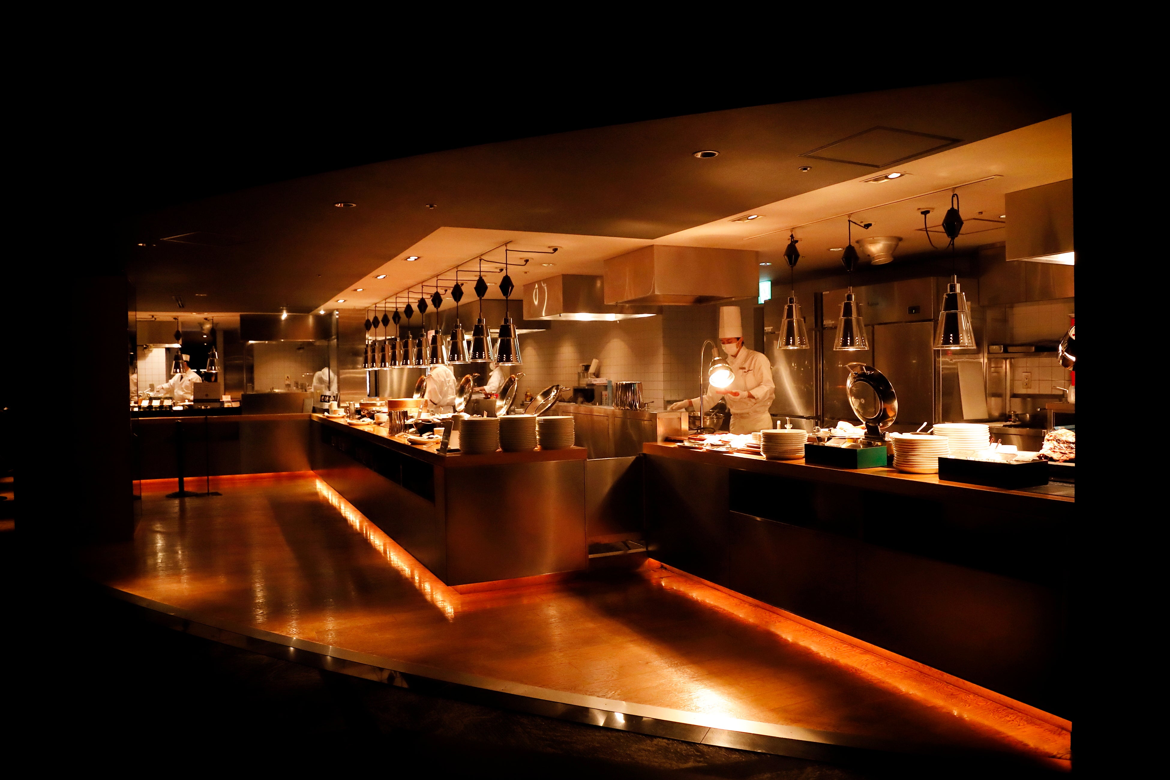 和・洋・中・スイーツこだわりの料理は、各エリアにシェフが並びオーダーするとその場で料理を仕上げるステージキッチンを完備。50種類以上に渡る豊富なメニューは、お気に入りが見つかるはず。ぜひ“自分だけの”フルコースを完成させ、心ゆくまでご堪能ください。