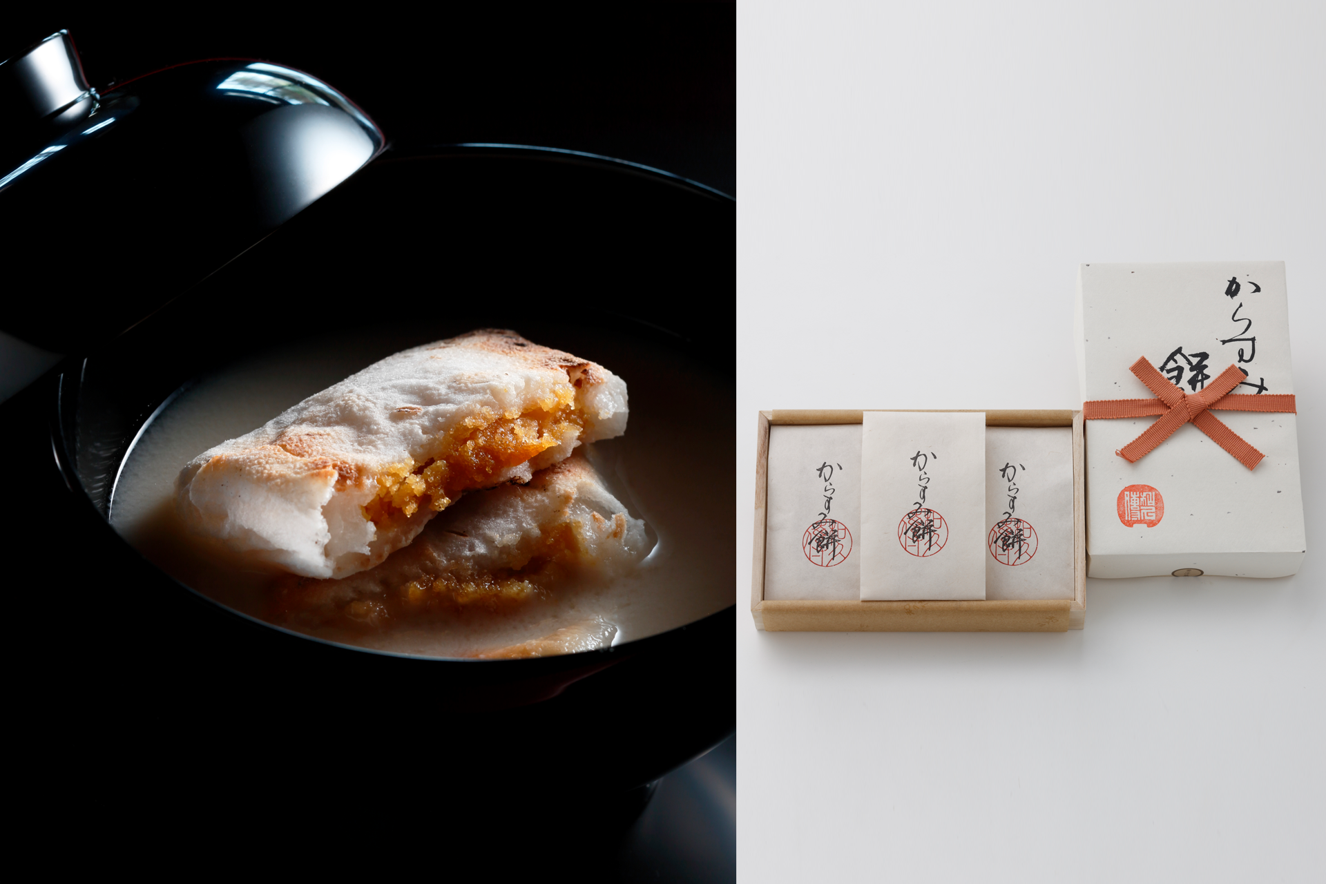 軽く炙れば餅がふっくらと香り立ち、からすみの濃厚な旨みが際立ちます。お雑煮に添えると一層格別で、お正月の食卓を豊かに彩ります。