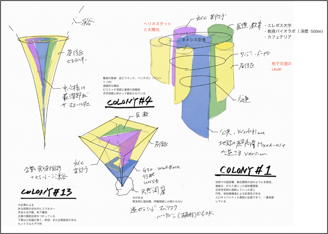 各コロニー設計コンセプトと機能構成