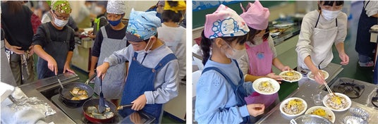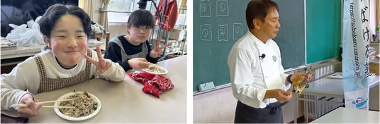 いよいよ試食タイム。酢飯に対してサバが多かったため、サバの身が残る予定でしたが、自分たちでがんばって作ったほぐし身を余すことなく混ぜ込みました。なのでとても具沢山。酢飯との相性も抜群で、サバの旨みが口いっぱいに広がり、あっという間に完食です。「うんまい!」「最高!」「俺たちやり切った!」など美味しさと充実感に溢れた声があちこちから響きました。児童からは「さばくのは難しかったけど、おもしろかったしためになった」「内臓を取ったりして最初は気持ち悪いと思ったけど、おいしくできてよかった」「また作ってみたい」などの感想が聞かれました。