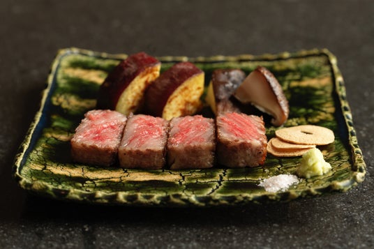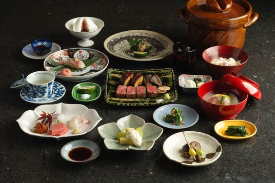 繊細な懐石料理の技と、ダイナミックな鉄板焼が融合。熊本あか牛のステーキや旬の食材を、五感で味わう至福のコース料理です。