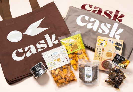 caskの大容量トートバッグの中に信濃屋オリジナルの人気商品が入ったお得なセットです。木桶仕込みの醤油を使ったおつまみにもなるお菓子やご飯のお供、スパイスの効いたオリジナルのキーマカレーも入って大満足!