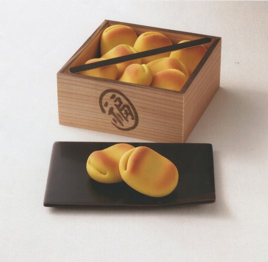 文人画家・富岡鉄斎にも愛でられた「福ハ内」は、コロンとしたお多福豆の形がかわいい焼き菓子。桝を表す木箱に入り、“ますます“繁盛を願う縁起菓子として長年愛される冬限定の代表銘菓です。