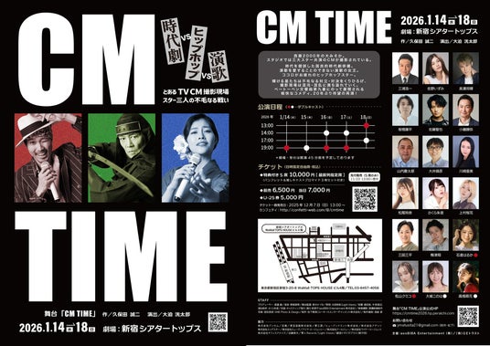 『CM TIME』が2026年1月14日 (水) ~ 2026年1月18日 (日)に新宿シアタートップス(東京都 新宿区 新宿 3丁目20-8 WaMall TOPS HOUSE ビル4階)にて上演されます。