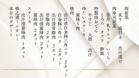 格之進が厳選した牛肉の魅力を、だしが極限まで引き出した特別仕様。和牛本来の旨味をじっくり味わえる、贅沢なコースです。