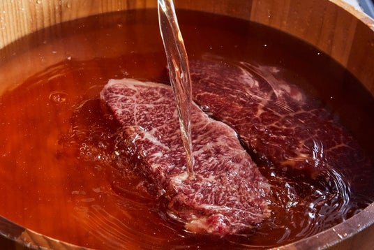 今回開発した「だし肉」は、単にだしに漬け込むものではありません。牛肉が持つ旨味成分「イノシン酸」と、昆布などに含まれる「グルタミン酸」。この2つの相乗効果を最大化するため、料理長が濃度、漬け込み時間、部位別の厚みまで細かく設計。数え切れない試作と検証を経て、ようやく理想のバランスに到達しました。