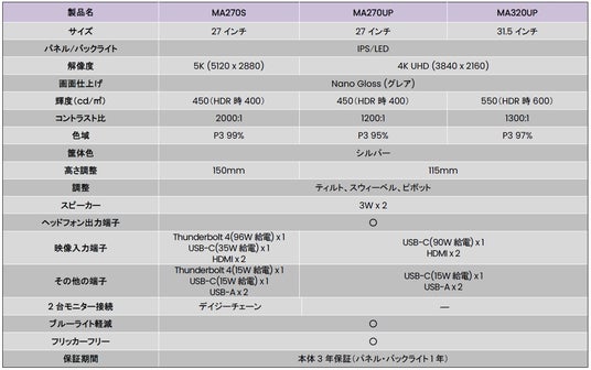 ~ Nano Glossグレアパネル採用の「MA270UP」「MA320UP」も同時発表~