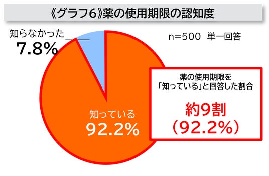 - 全体の9割以上(92.2%)が「薬の使用期限があることを知っている」と回答