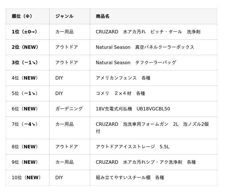 コメリドットコム特集ページ内では20位までのランキングを公開しております。