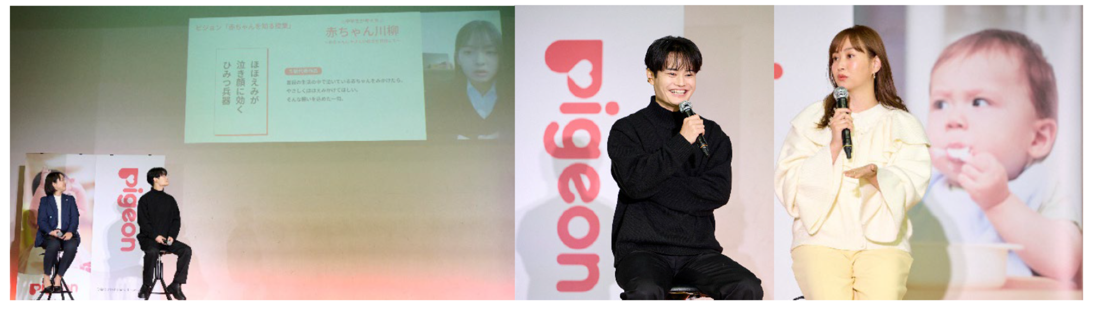 トークセッションでは、ピジョン株式会社コーポレートブランディンググループの半澤ふみ江も交え、「赤ちゃんにやさしい未来」や育児を取り巻く課題や周囲のサポートの重要性について、教育・育児・企業の立場から意見を交わしました。二人は、中学生の頃から育児のリアルを学ぶ本授業は、「中学生という多感な時期に育児について『知る・想像する』機会となり、将来の社会を変える素晴らしいきっかけになる」と、次世代の「育児の早期教育」に強い期待を寄せました。