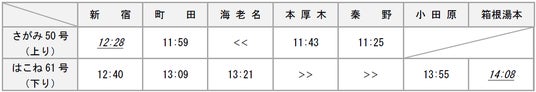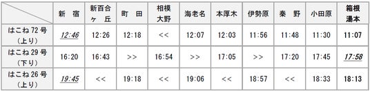 以下の3列車について、上り方面は小田原発を箱根湯本発に、下り方面は小田原行を箱根湯本行に変更します。