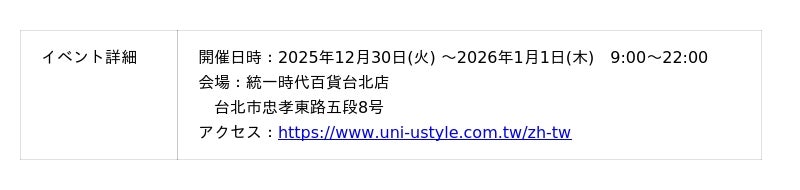 開催日時:2025年12月30日(火) ~2026年1月1日(木) 11:00~21:30