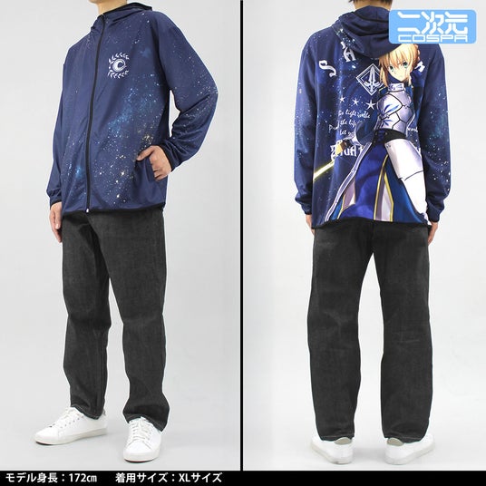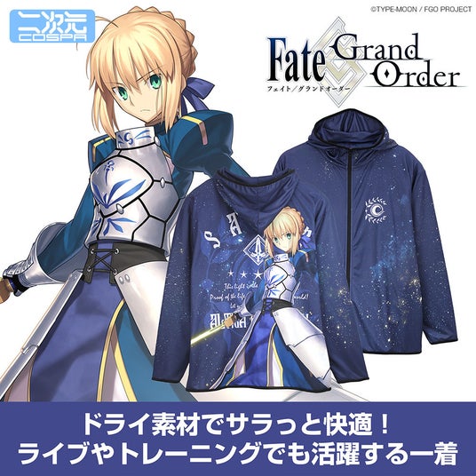 「セイバー/アルトリア・ペンドラゴン」を全面にプリントした、ドライ素材で速乾性が高いパーカーと、