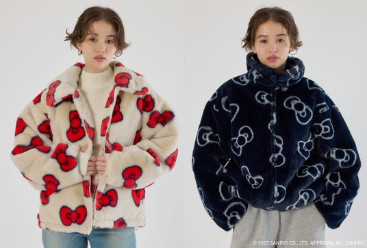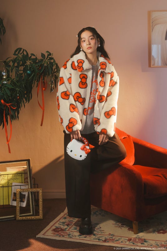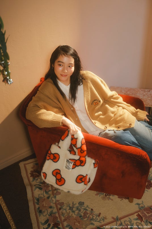 大人気のサンリオキャラクターズコラボ第4弾は、Holidayシーズンにぴったりのラインナップ。冬ファッションに欠かせない、ふわふわでもこもこのフェイクファーコートやトートバッグ、ヴィンテージライクなニットカーディガン、サンリオキャラクター好きには必見のフェイス形ポシェットやぬいぐるみ形リュックの他、スリッポン、キーホルダーチャーム、ウォレットなどの小物も展開。