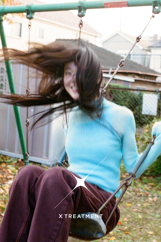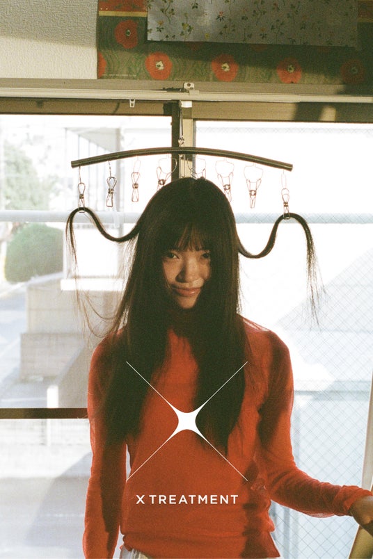モデルには、川島小鳥の写真集『サランラン』でも被写体となったGYURI KIMを起用。生活感の残る自宅の一室で、窓から差し込む自然光にさりげなく照明を重ね、X TREATMENTで整えられた髪の質感や動きを、やわらかく、のびやかに切り取りました。