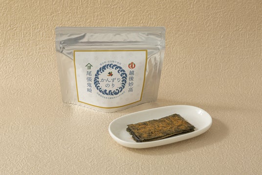 2023年 受賞完全無添加で、豪雪地新潟で3年以上発酵させた唐辛子調味料「かんずり」と、ミネラル豊富な鬼崎産「初摘みのり」のみを使用。職人が三度焼きにこだわる独自の技術により、かんずりの唐辛子の旨味・柚子の香りと、のりの甘み・磯の香りが相まった、唯一無二の味わいを生み出しています。