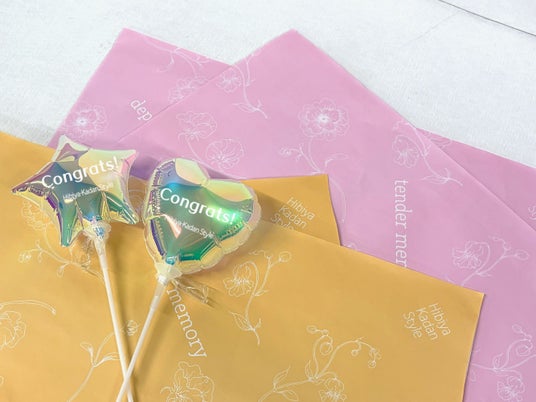 「for YOU」には「想いを綴る手紙」と「オモイを伝える花と花言葉」をイメージした、オリジナルラッピングペーパーを使用しています。