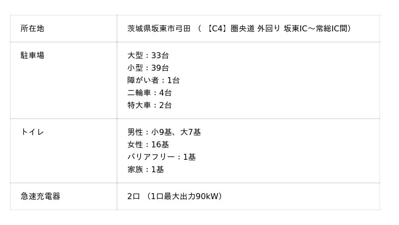 NEXCO東日本(東京都千代田区)は、【C4】首都圏中央連絡自動車道(以下「圏央道」)外回り 坂東インターチェンジ(以下「IC」)~常総IC間に新たに坂東(ばんどう)パーキングエリア(以下「PA」)(茨城県坂東市弓田)をオープンします。